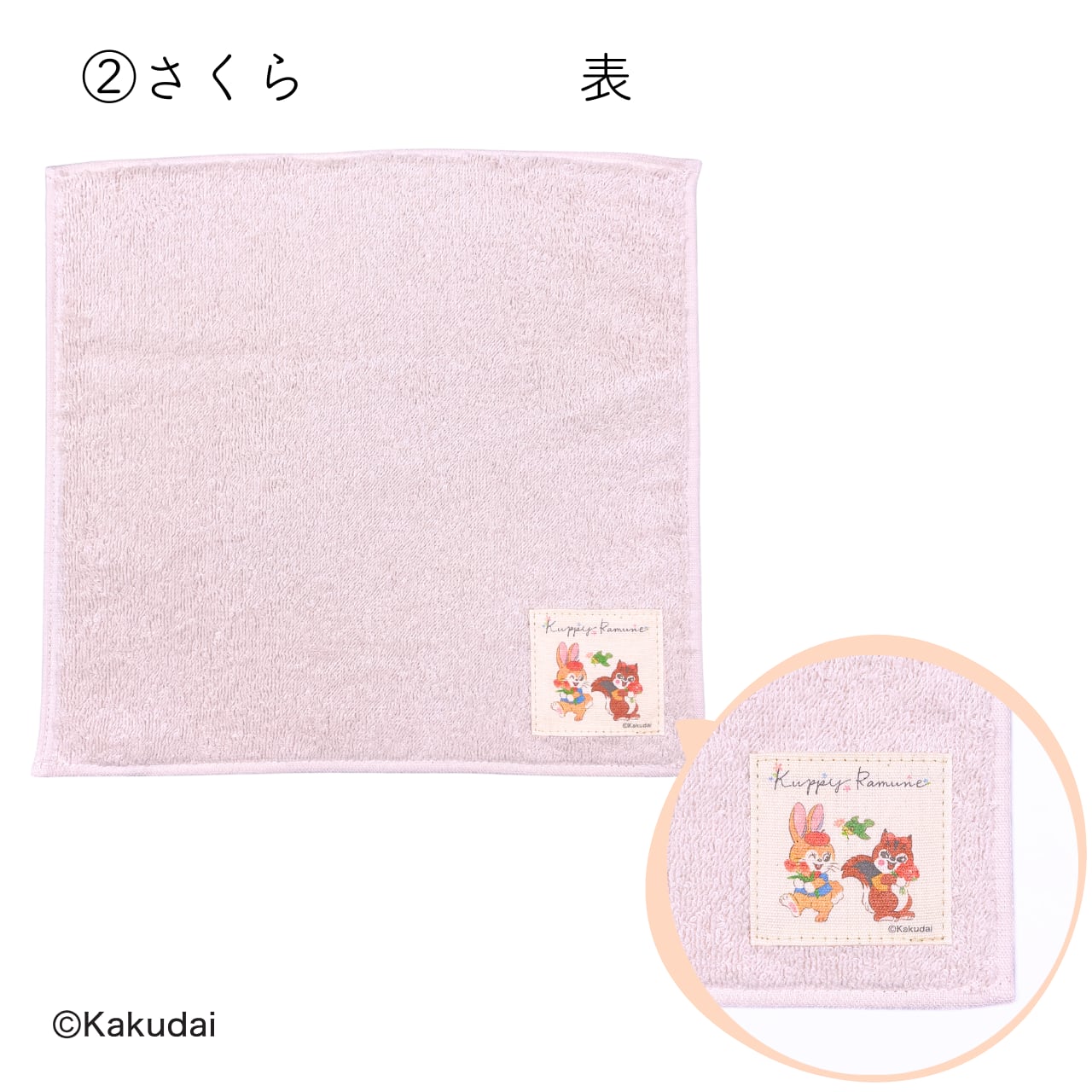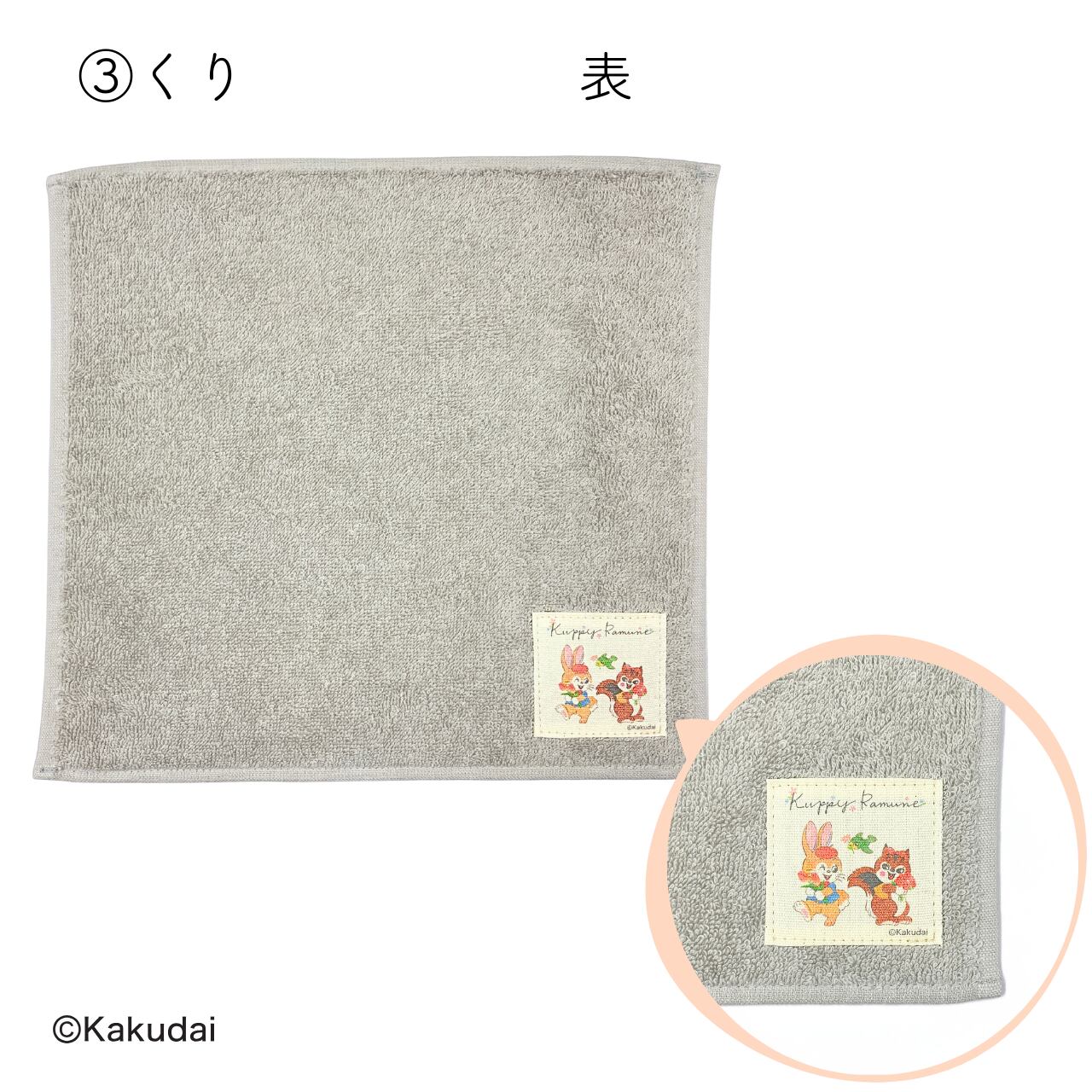 クッピーとラムが可愛らしく微笑んでいるミニタオルです。