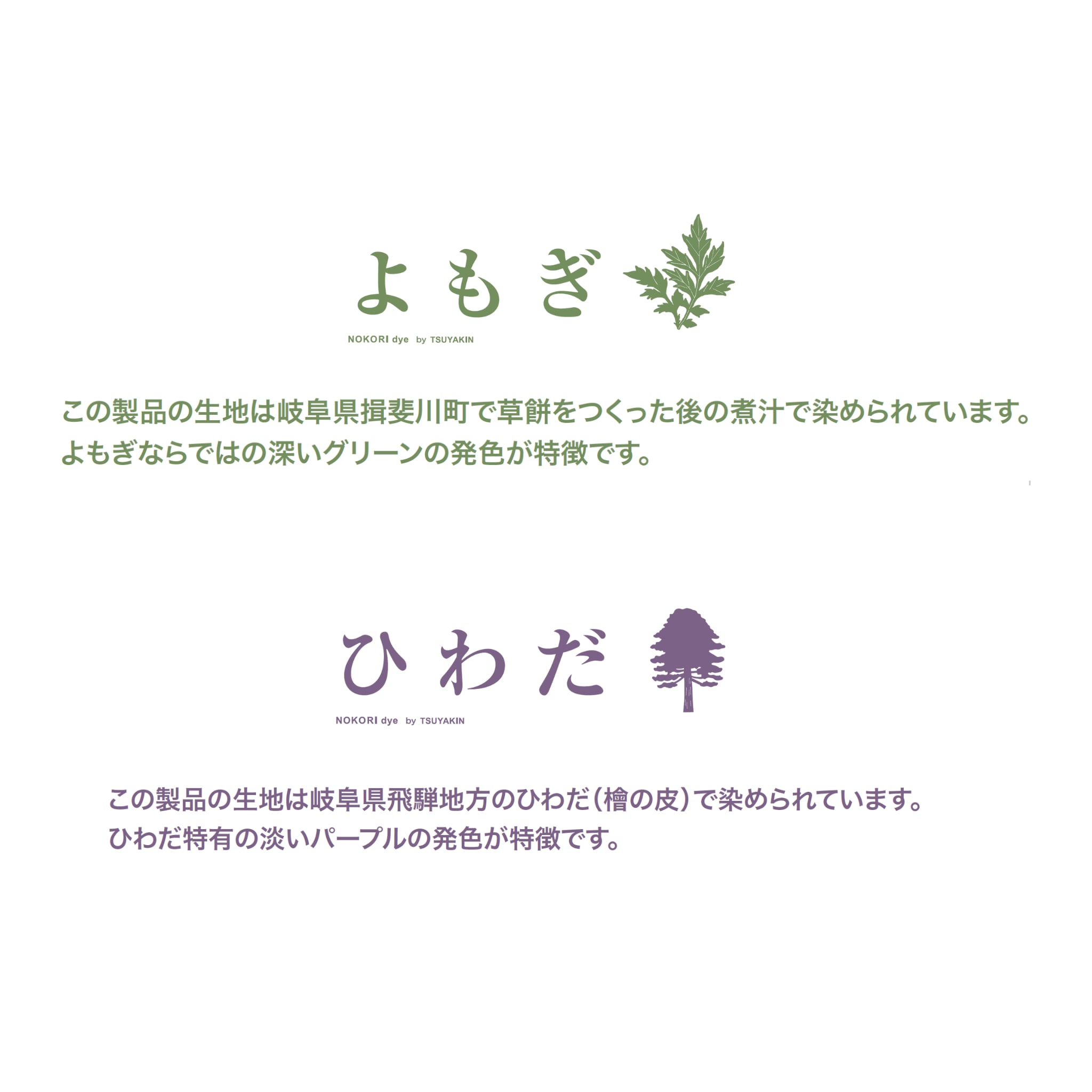 自然界から抽出した色のため、環境に優しく、染まった色は見ているだけで気持ちが落ち着くようなやわらかい色合いをしています。