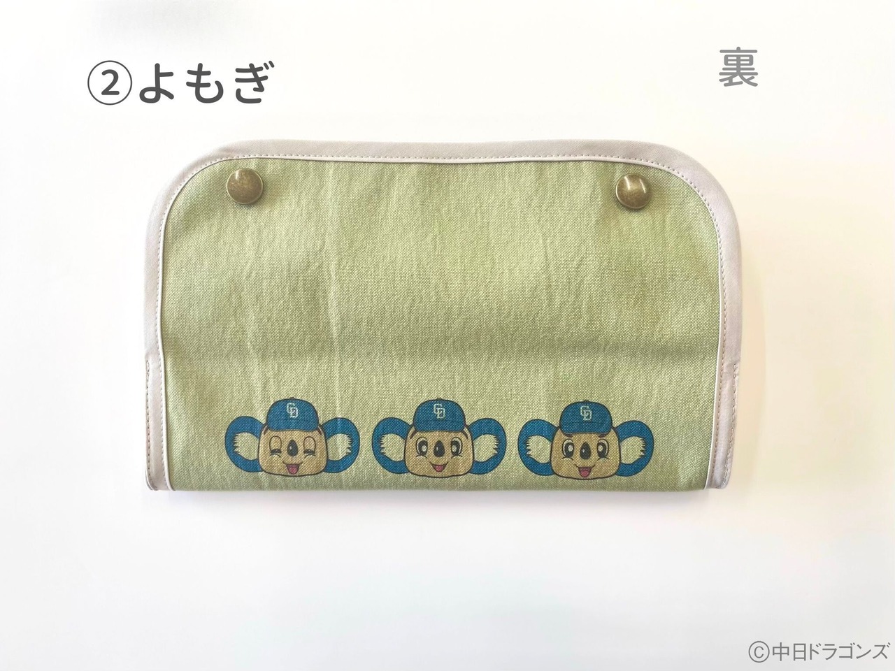 よもぎカラーは両面に自由度満載なドアラさんがプリントされており、色んなドアラさんを楽しんでいただけます。